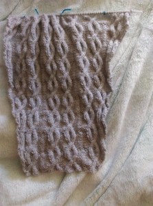 I found a curved cable needle much easier than a regular straight cable needle easier. The cable pattern is done over 25 stitches so it is a bit of a mission to get perfect and its a repeating 14 row pattern at that.