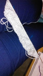 As you can see even the arm holes feel very straight boxed so hopefully it will knit in with the sleeves ok… But I am a long way off finding that out… I am using Poundland wool yet again in “grey” which is a nice light grey colour.