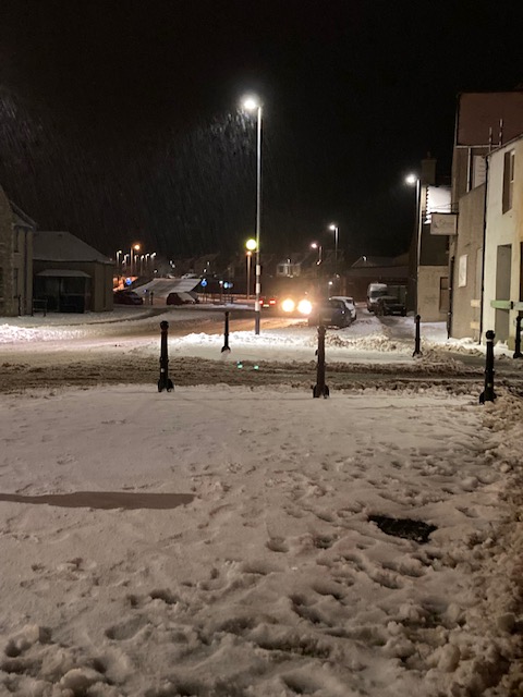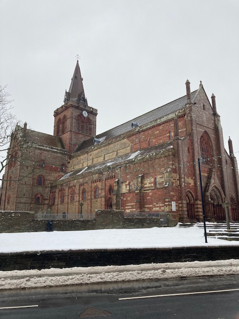 We arrived very, very, very late at night to a snowy Kirkwall, apparently there’s not been weather like this in quite a few years. We have had a baptism by snow instead of fire.