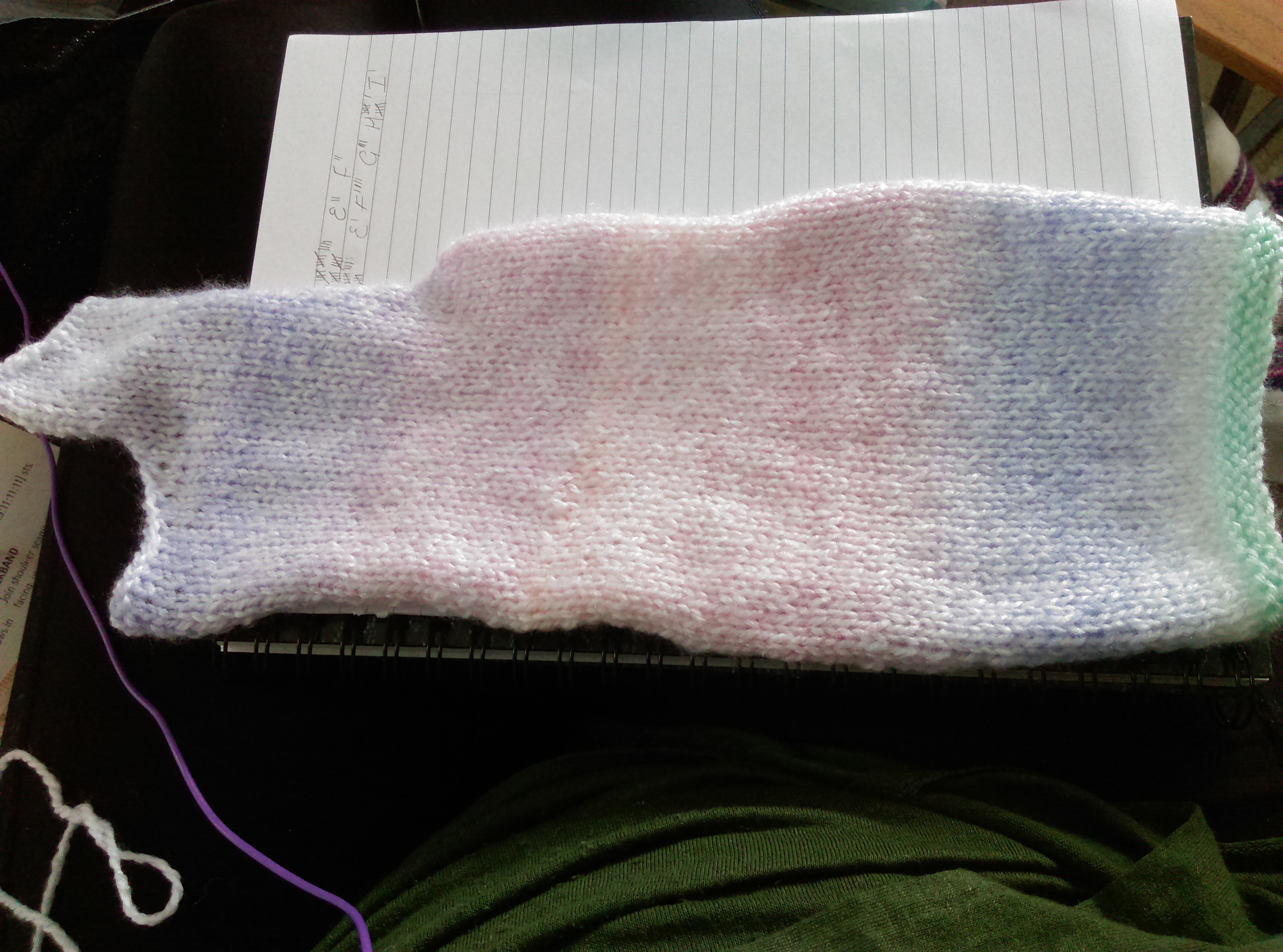 This is the little baby cardigan (0-6 months) with buttons… Turns out adding the buttons just required a bit of patience and stabbing myself with the needle 😦